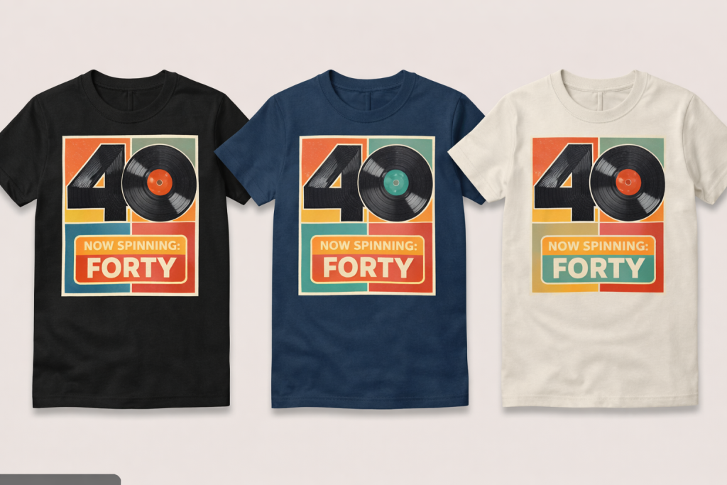 Celebrate forty with classic record nostalgia. This retro tee channels old-school album art, analogue sound culture, and timeless music passion through vintage typography and warm, faded colour palettes.